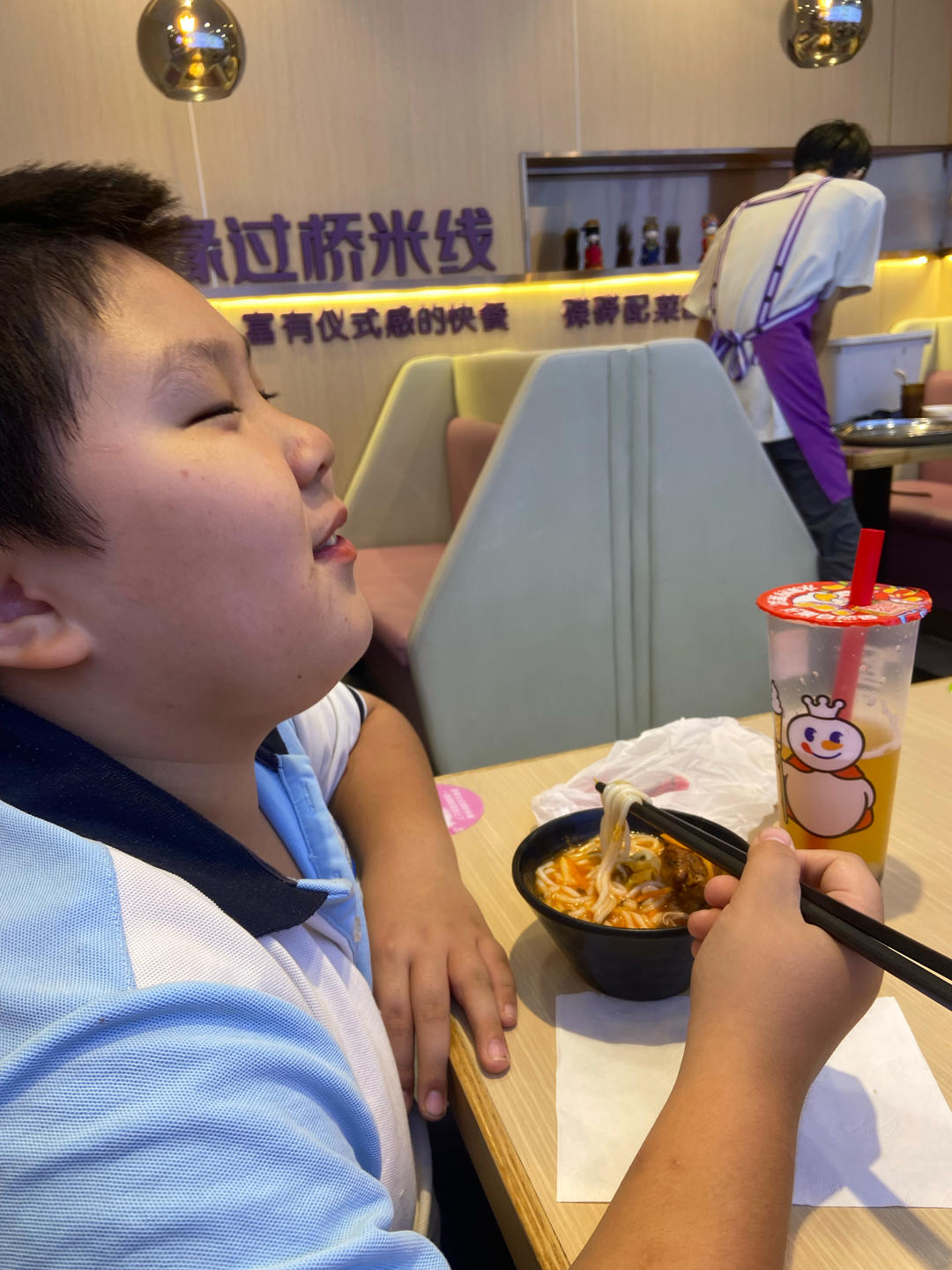 带小胖孩吃爆浆鸡排和他喜欢的番茄米线
