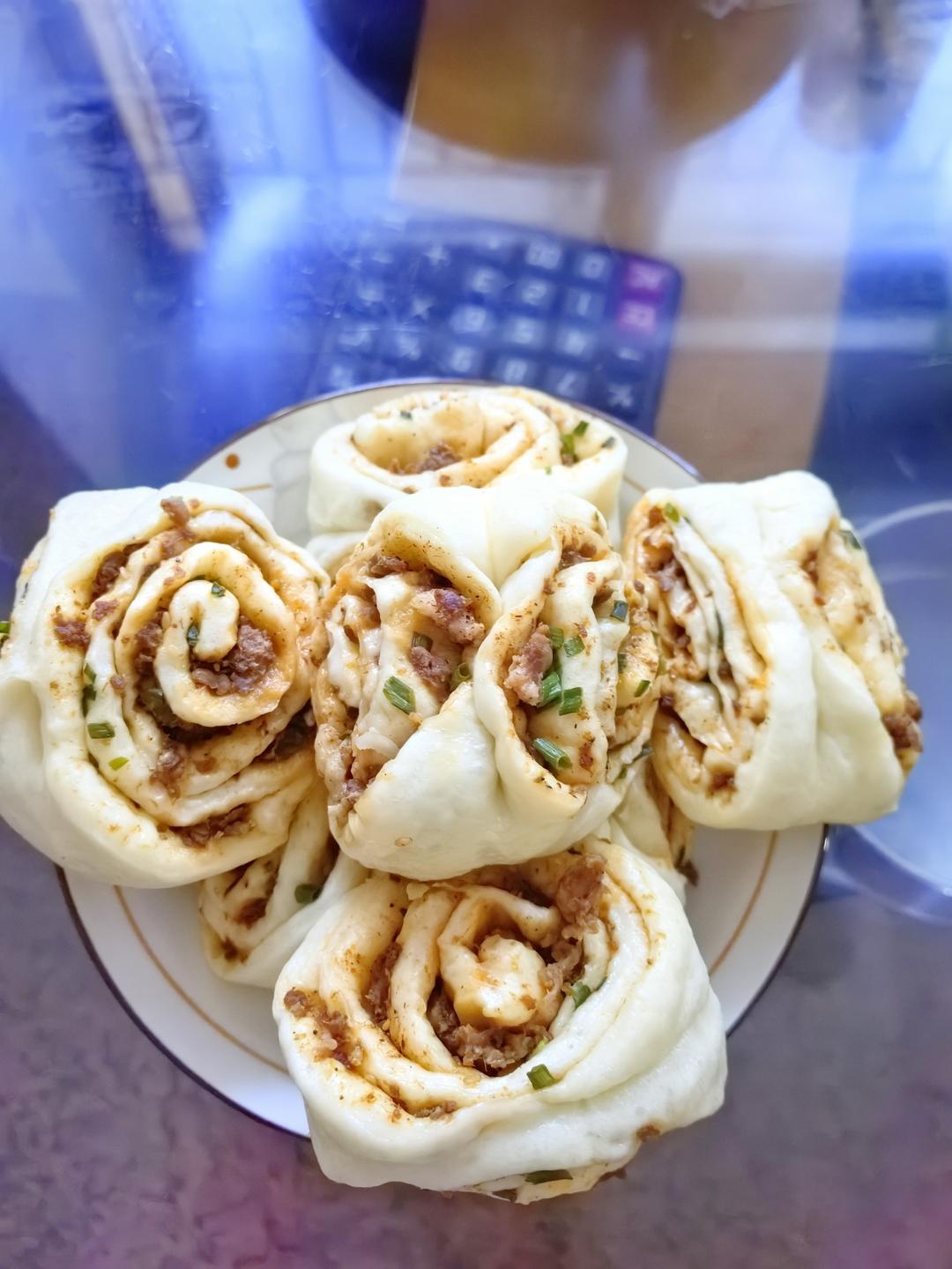 葱香肉花卷