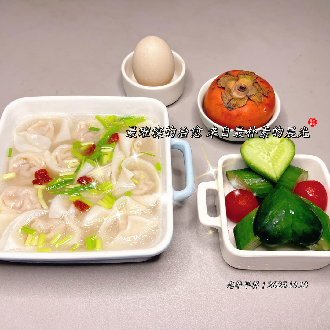 森_f3py 做过 早餐•2025年10月13日 #早餐•2025年10月13日# 。今日早餐清单:𝟭𝟬𝗠𝗮𝗿𝗸✔️ ◦ 暖心小馄饨 🥟 ◦ 能量水煮蛋 🥚 ◦ 柿柿如意 🍅 ◦ 清爽小拼盘 🥒看似简单,却是打开一天最完美的方式。 3天前