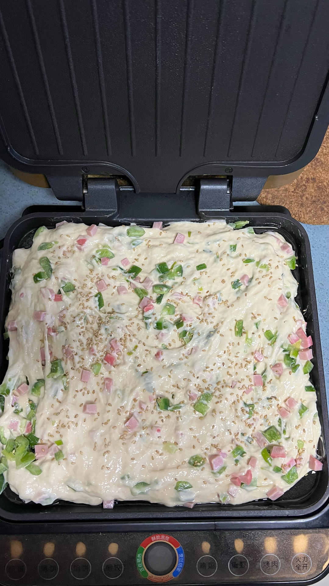 加了青椒红肠丁 颜色很好看 面饼发的超级好!