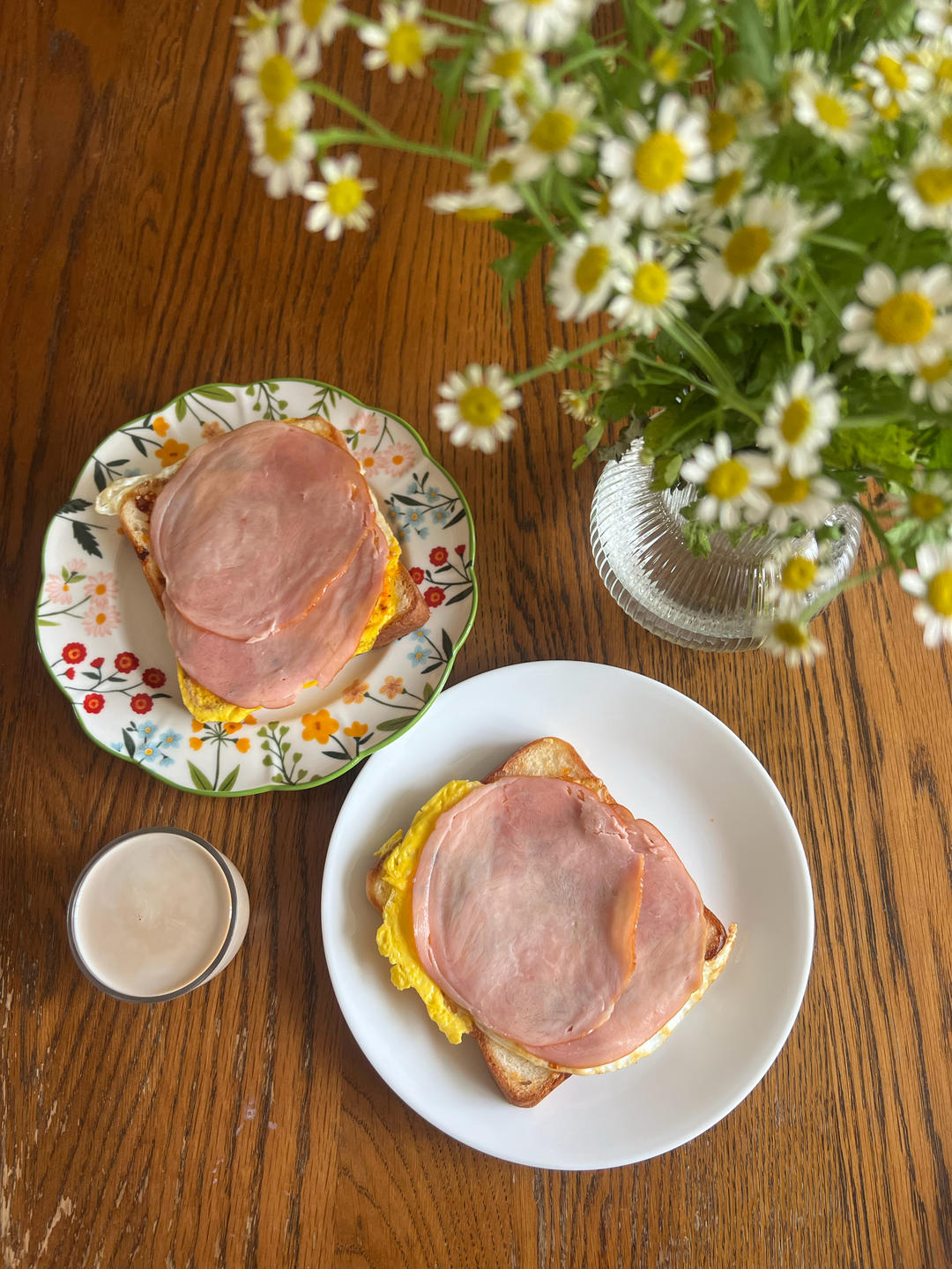 简单的煎蛋火腿吐司,一口生椰拿铁~