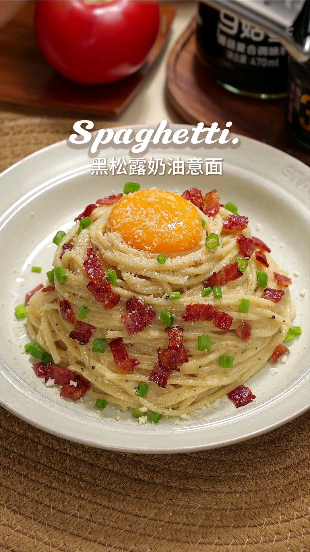 在家做黑松露奶油意面也太绝了!奶香浓郁到一口沦陷,比西餐厅还好吃!先把培根切丁、洋葱切丝,水开下意面煮6分钟;锅里放少许油,把培根煎到焦黄出油超香,盛出来备用;不用洗锅,直接用底油炒香洋葱丝,倒50ml淡奶油煮开,放两片芝士、盐、黑胡椒和一勺黑松露,炒到芝士完全融化;把煮好的意面倒进去翻拌,让每根面条都裹满 creamy 的酱汁;最后撒上培根碎、小葱,摆个可生食鸡蛋黄,再擦点干酪碎,仪式感直接拉满!入口先是黑松露的高级香,接着是奶油的醇厚,培根还带着脆感,好吃到舔盘!