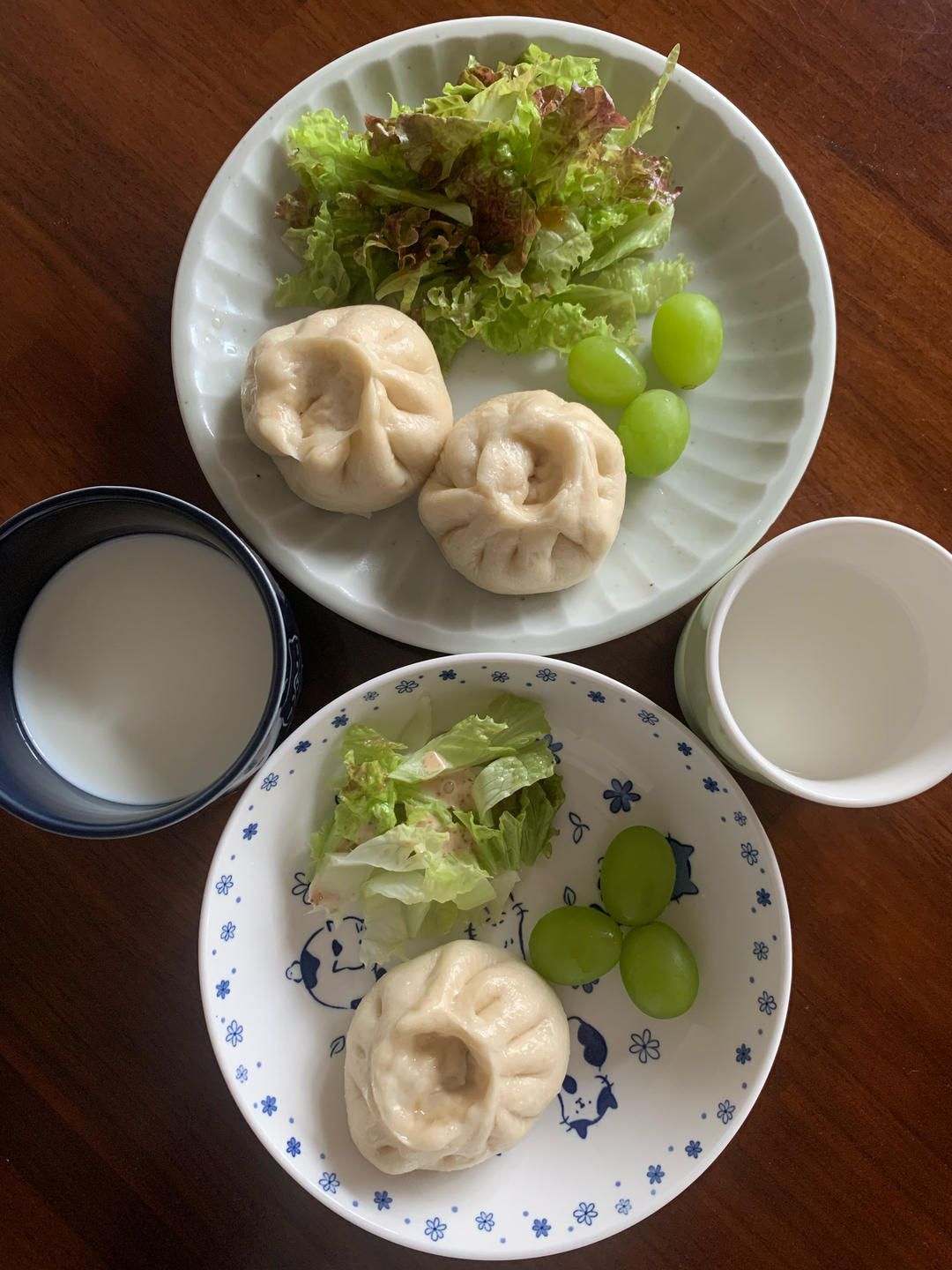 自制肉包➕生菜➕葡萄➕牛奶