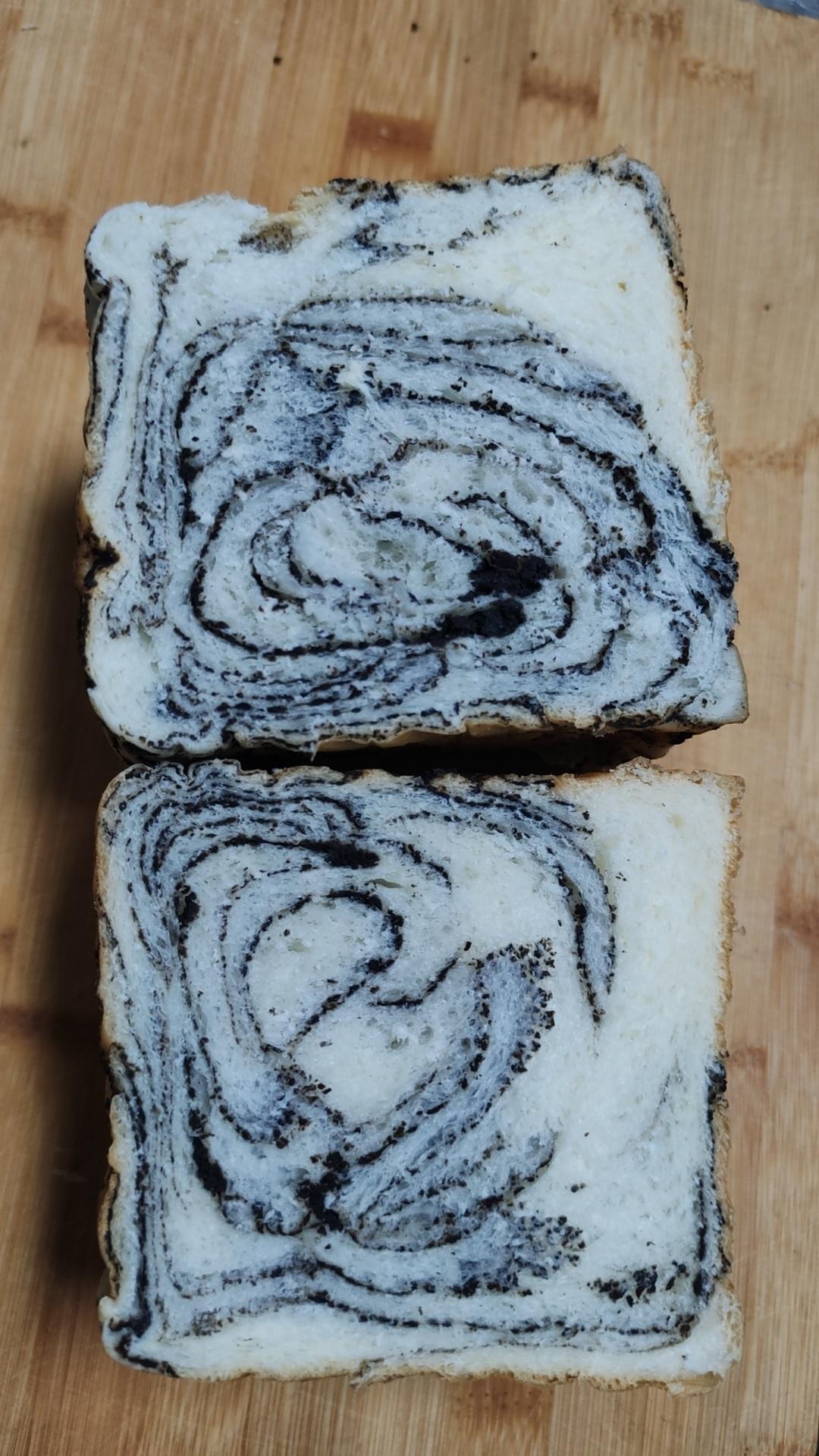 做黑芝麻月饼,馅做多了,用来做了几个吐司,还不错,好看又好吃