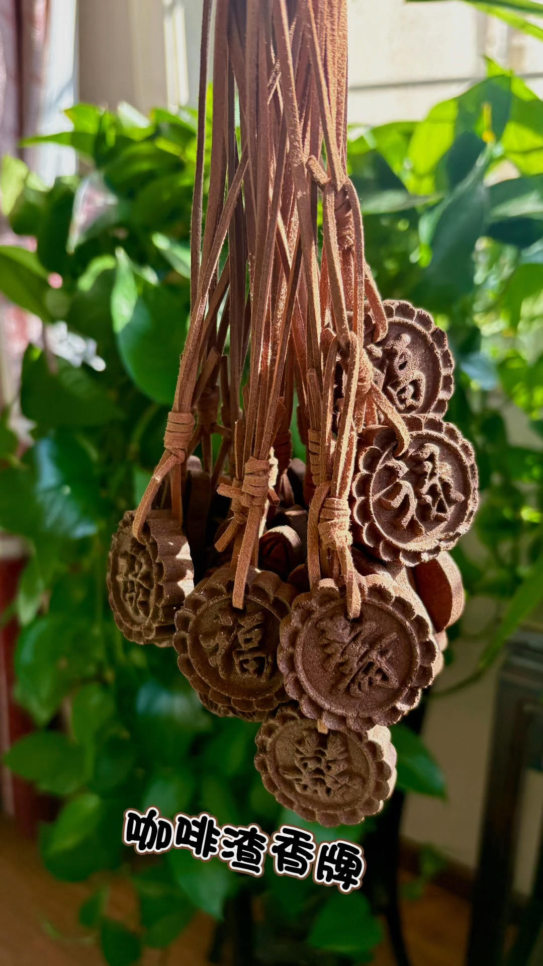 咖啡渣香牌晾干了,有福禄寿禧的串串牌。