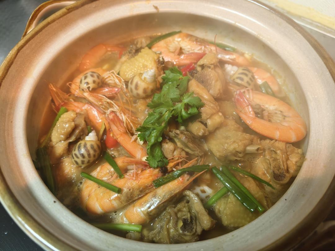 花螺鲜虾鸡煲