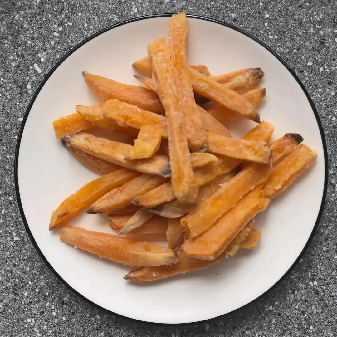 _ls7w_4l7y 做过 空气炸锅十五分钟搞定黄金红薯条 200度10分钟,翻面,200度10分钟,230度5分钟。烤到部分红薯的尖端微微发黑即可。 用的烟薯25号,做好了是软的,撒点盐后装盘。可蘸番茄酱。老公很爱吃。 2025-10-26