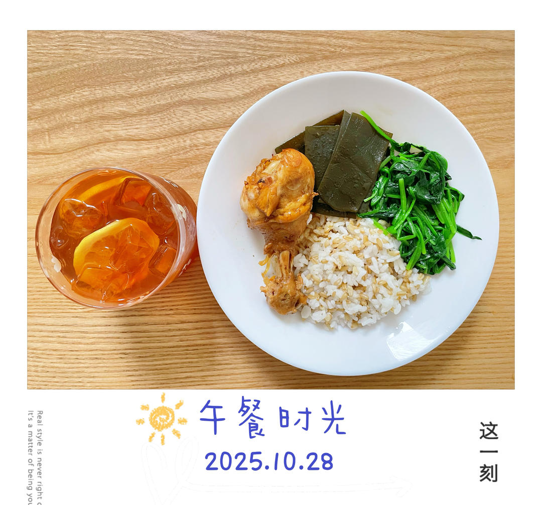 卤鸡腿海带饭+冻柠茶~