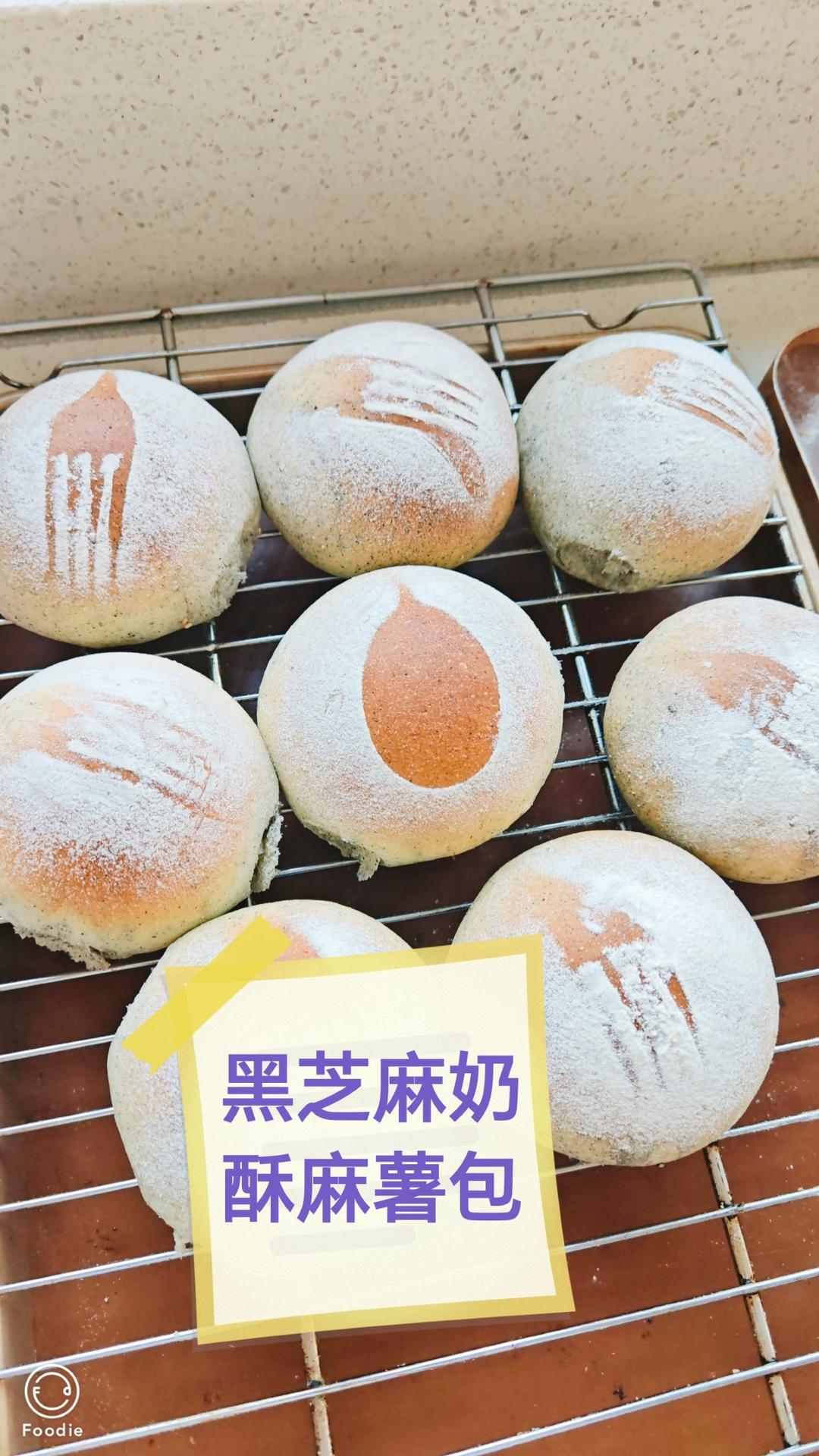 黑芝麻奶酥麻薯包