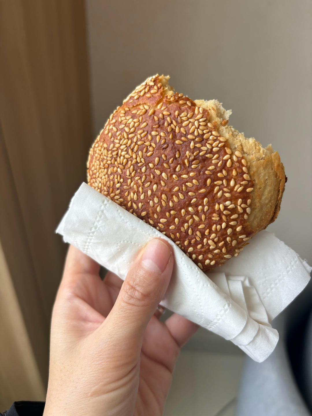 今天终于把想吃的老北京芝麻烧饼买回来了。其实它是有点咸味的。