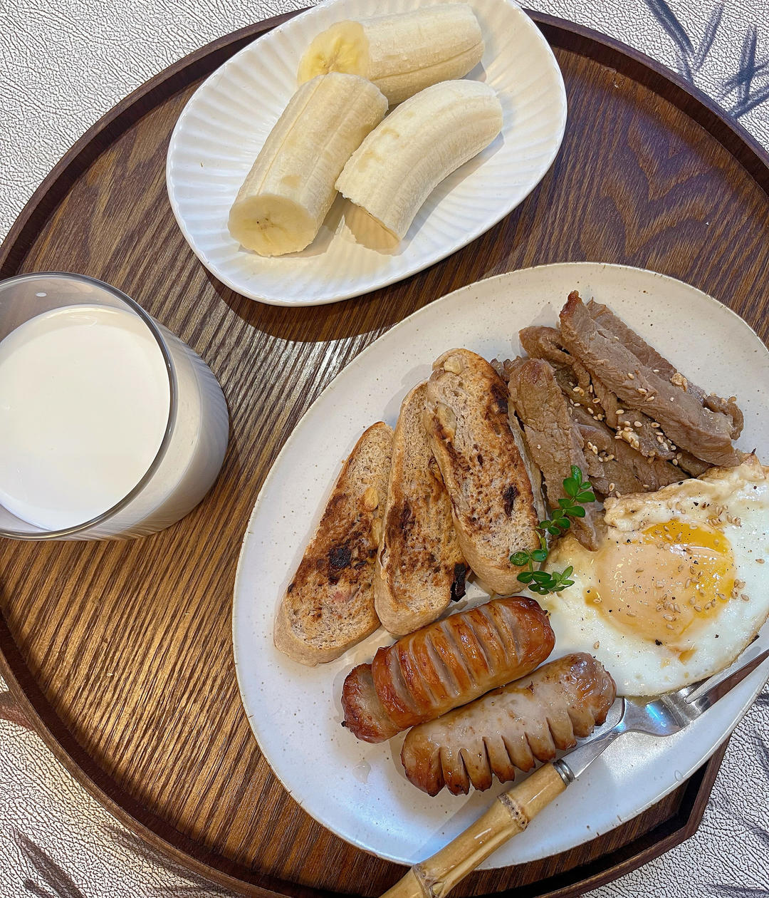 海上燕子坞 做过 早餐•2025年11月3日 #早餐•2025年11月3日# 初中生早餐²⁰²⁵/₁₁ ₀₃☁️—— —— —— —主食:欧包+烤肠+煎牛排🥩+煎蛋水果;香蕉🍌饮品:牛奶“欢迎光临,开启新的一月早餐”💜 4天前