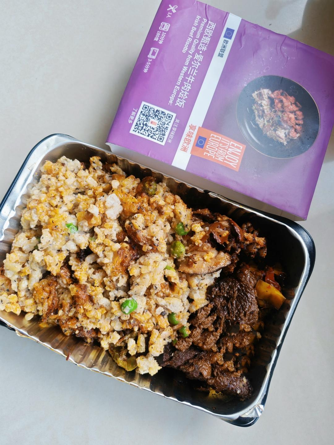 地道的欧洲特色美味简单又美味,只需烤箱10分钟就搞定#享味欧洲#[西欧甄选·爱尔兰牛肉烩饭],鲜嫩的爱尔兰牛肉先煎香后慢炖,融入西班牙里奥哈PDO葡萄酒、捷克布杰约维采PGI啤酒及细嫩的德国蘑菇等多种食材,风味浓郁;搭配由意大利大米、奥地利牛奶烹制而成的奶油烩饭,佐以意大利佩克利诺罗马羊奶酪PDO,源自多瑙河地区的丝滑浓香,味道暖心而经典。 #多彩欧洲美味 纵享万千搭配|餐盒尝新 欢享冬日节日季#