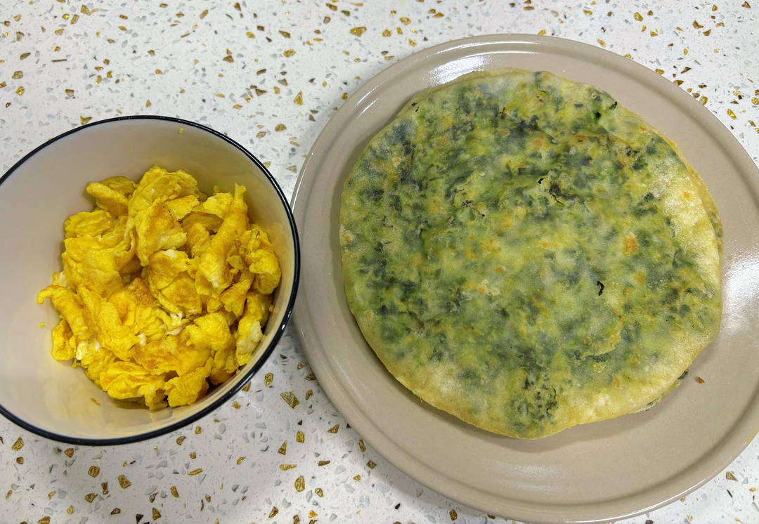 青菜肉沫馅饼,炒鸡蛋🥚