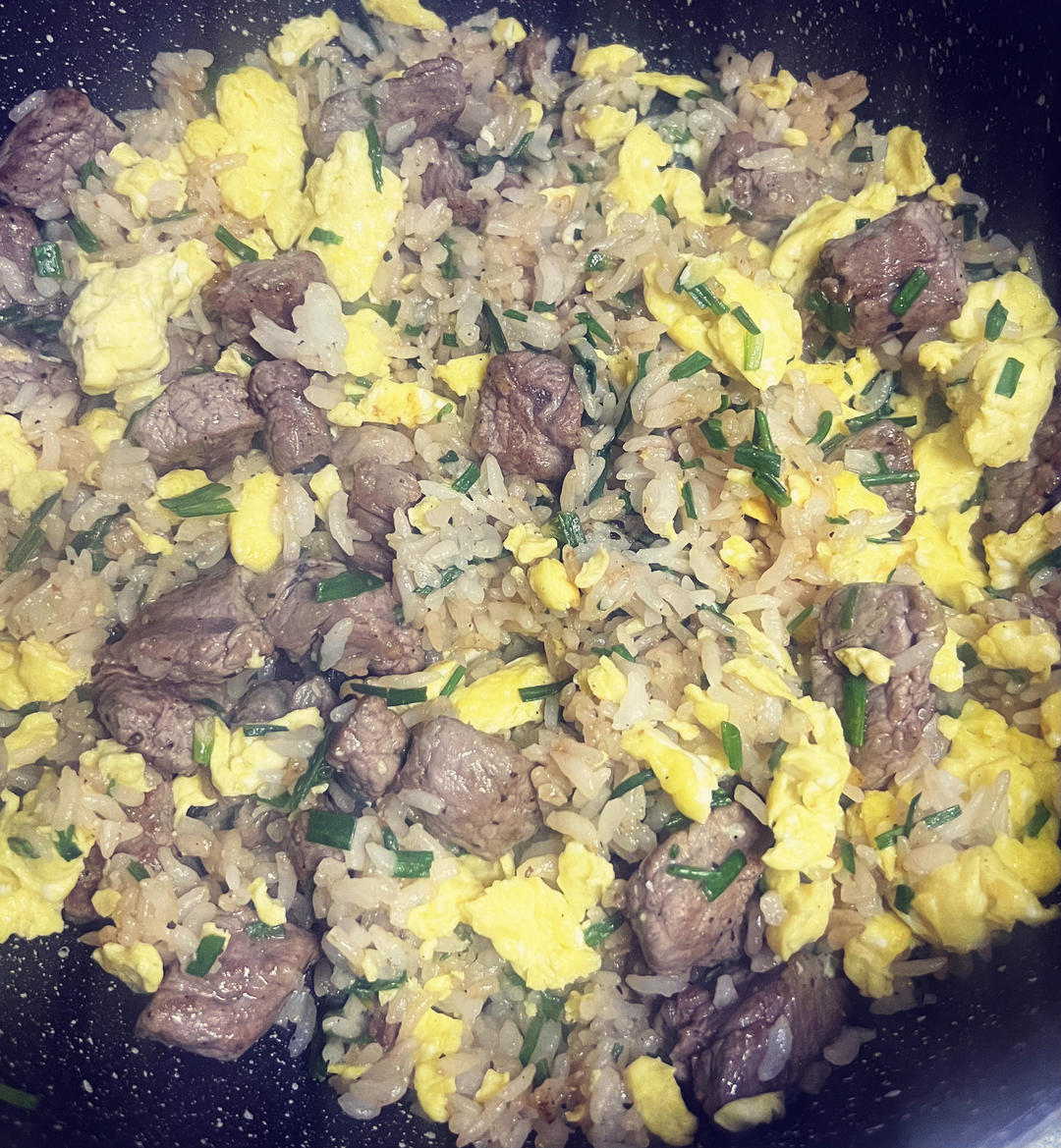 今天的晚餐给小朋友准备他喜欢的牛肉蛋炒饭。