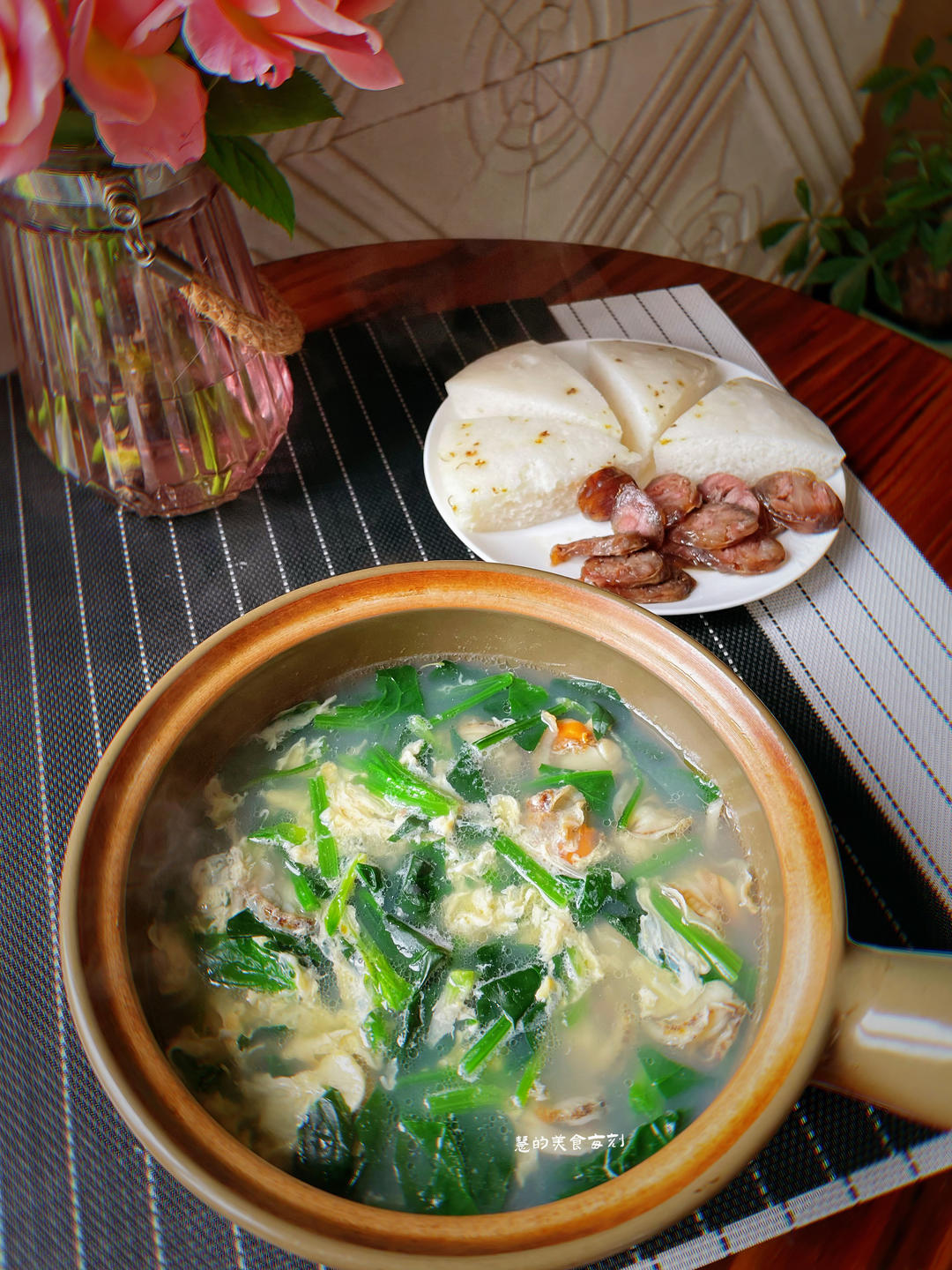 菠菜汤 桂花糕 香肠 美餐😄