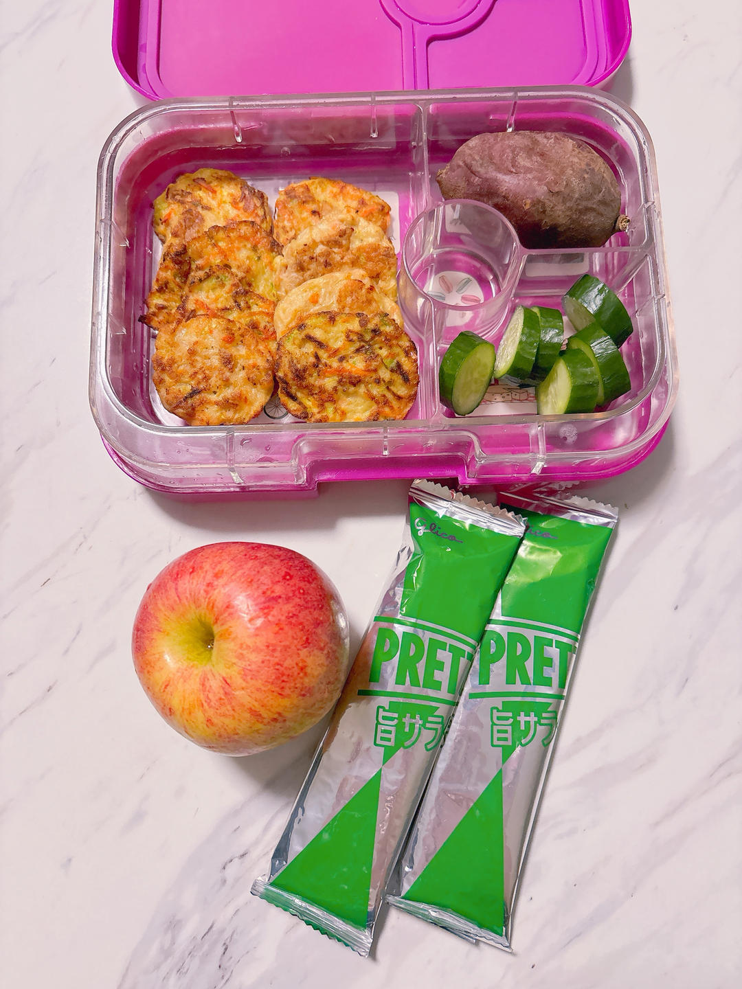 今天吃啥米 做过 mommy's cook #mommy's cook#Day55 veggie pancakes+cucumber+yam & apple+pocky #Nana's lunch box# 2025-11-22