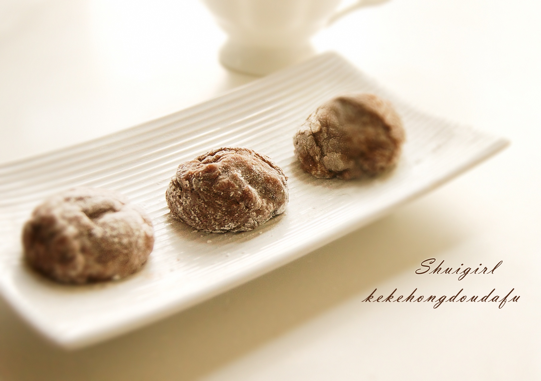 擅自把抹茶粉换成了可可粉。包的太难看了,全是皱褶。真是佩服那些能把大福包的圆滚滚的人呢。
