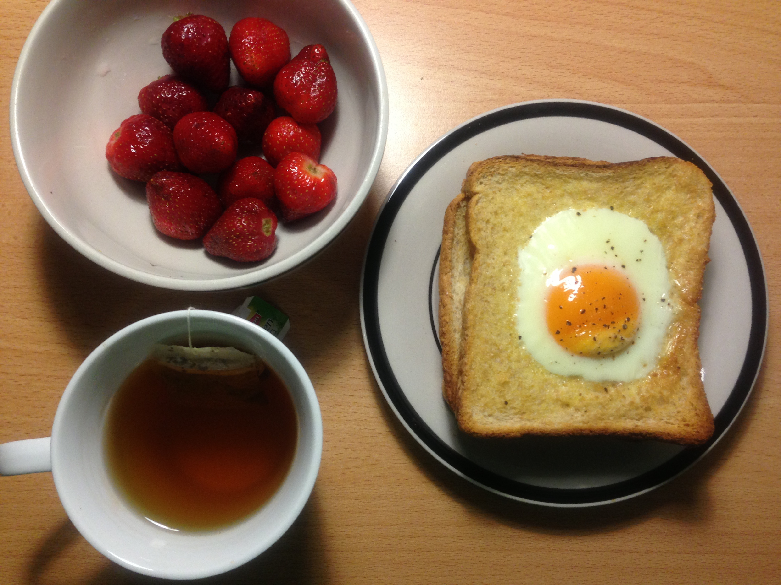 吐司煎蛋+红茶+草莓 ^ ^ 美好的一日~