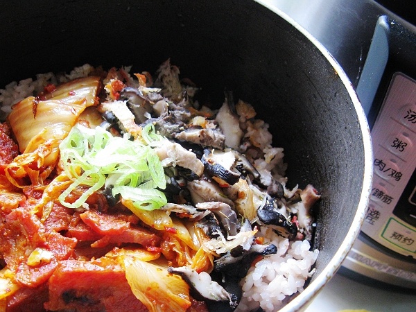 没有石锅,把小奶锅烧热然后添饭,可以制造出焦香的底