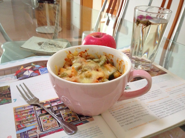 焗蝴蝶面+苹果+花茶 在家也能吃焗面的感觉是在是爽!