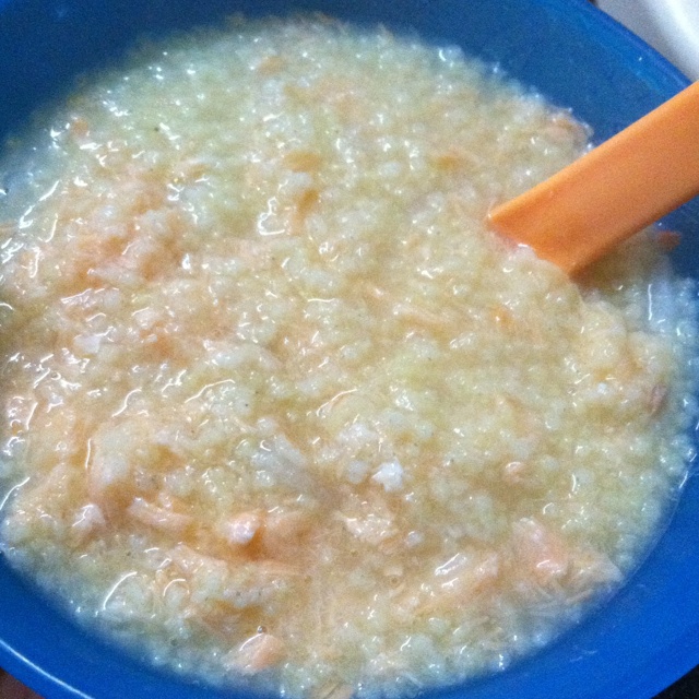 下午给小人做了小米山药三文鱼粥,吃得好欢!我尝了下,确实又鲜又糯,很适合宝宝吃