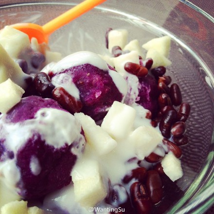 做成酸奶蜜豆紫薯球 这三样的搭配有酸有甜还绵~