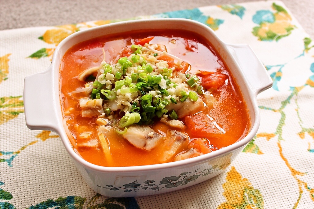 番茄汤好好喝T T……可惜选错了鱼,Tilapia鱼味太重,不适合做番茄鱼啊酸菜鱼~~catfish才是首选!
