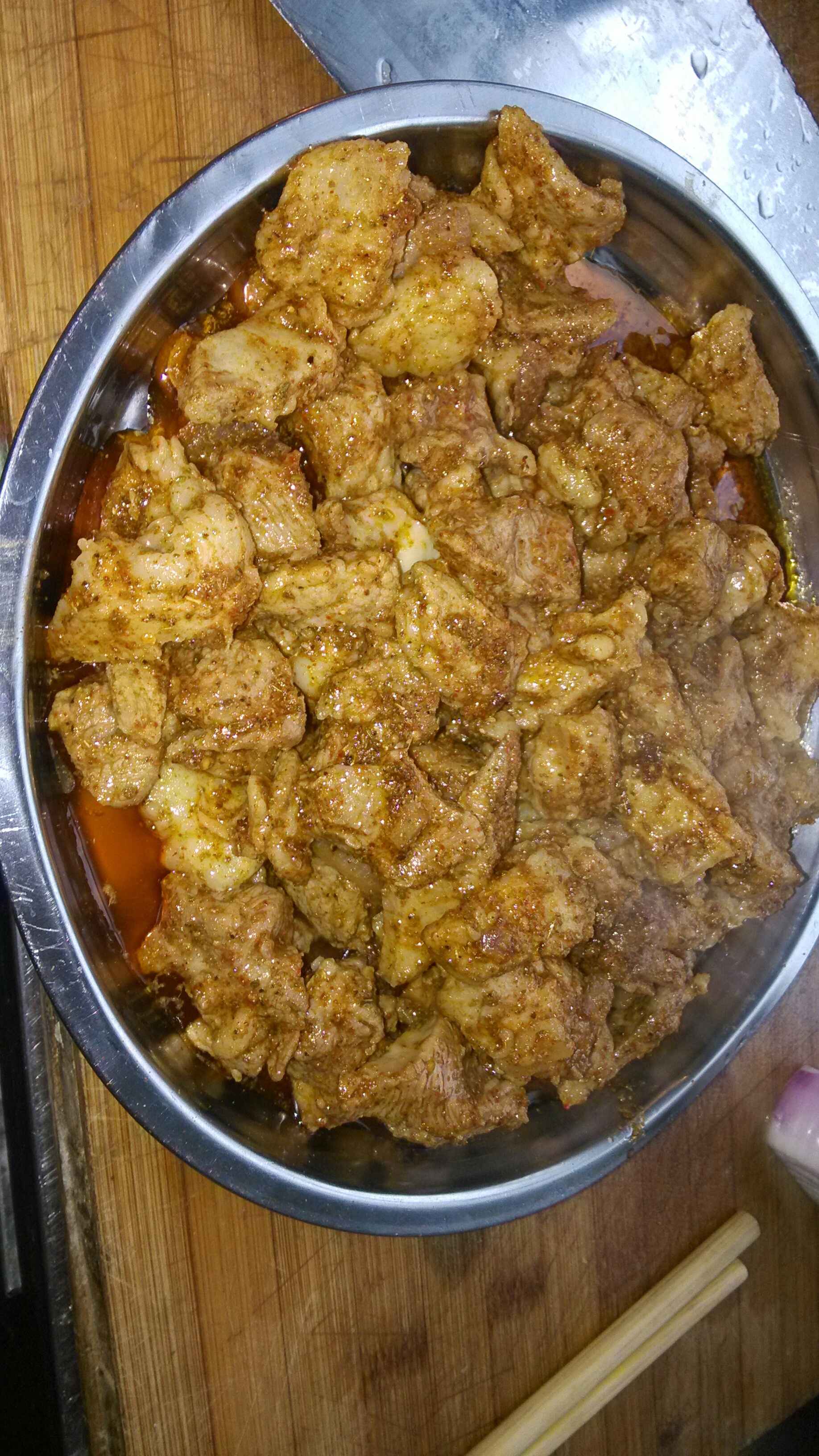 我稍微加了些洋葱来去下羊肉的膻味,在肉的处理上我加了蛋清和盐腌制了一会让肉更嫩,这样掌握不了烹调时间的人也能咬动。