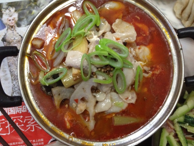 底料是藕片,第一次片鱼,没那么难,郫县豆瓣酱绝对是神器。