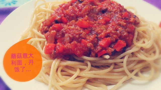 蕃茄蘑菇肉酱意大利面