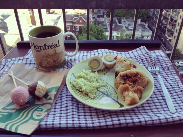 马小花要大笑 做过 不吃早餐会死星人 2013 06 13 時間真的好快 蹭地我出來整整一年了 一年前的我今天落地一年後的我準備吃完早餐去上spinning 然後回家洗澡準備presentation 感謝這一年來沒走的和新來的 以後的路也需要妳們的支持 廢話多了0.0今天絕對甜咸對半!!因為我切了一個甜粽子一個肉粽子.. 茶葉蛋一顆 (拜託端午已經過了好嗎(=゚ω゚)ノ) 黑咖一杯 salad一小份 我不知道怎麼描述名字但我超級喜歡!還有chocolate和vanille的小球兩個 配黑咖一杯 早安>< 2013-06-13