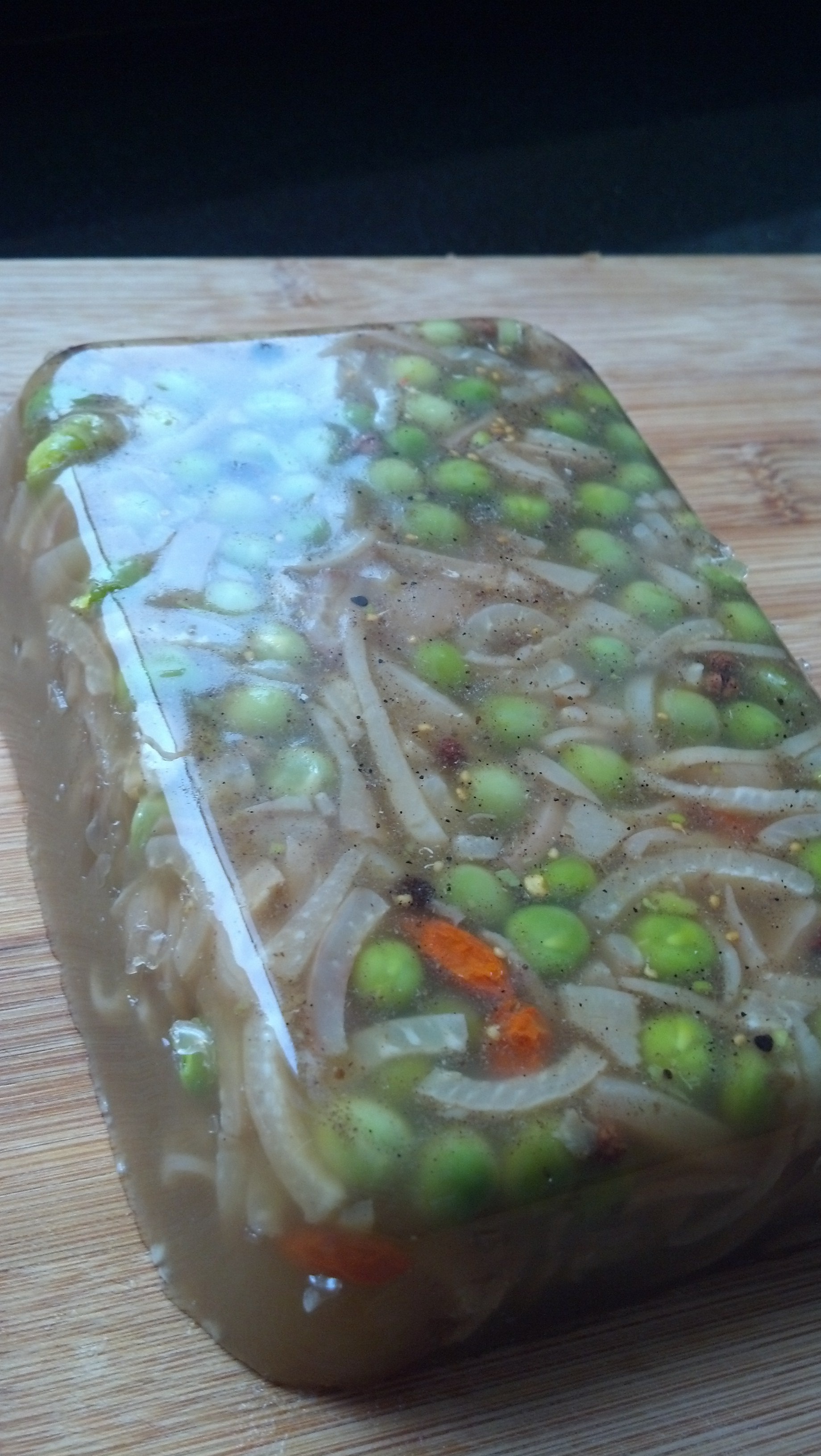 加了些枸杞和青豆,拍的时候猪皮冻晶晶亮,舍不得切了。