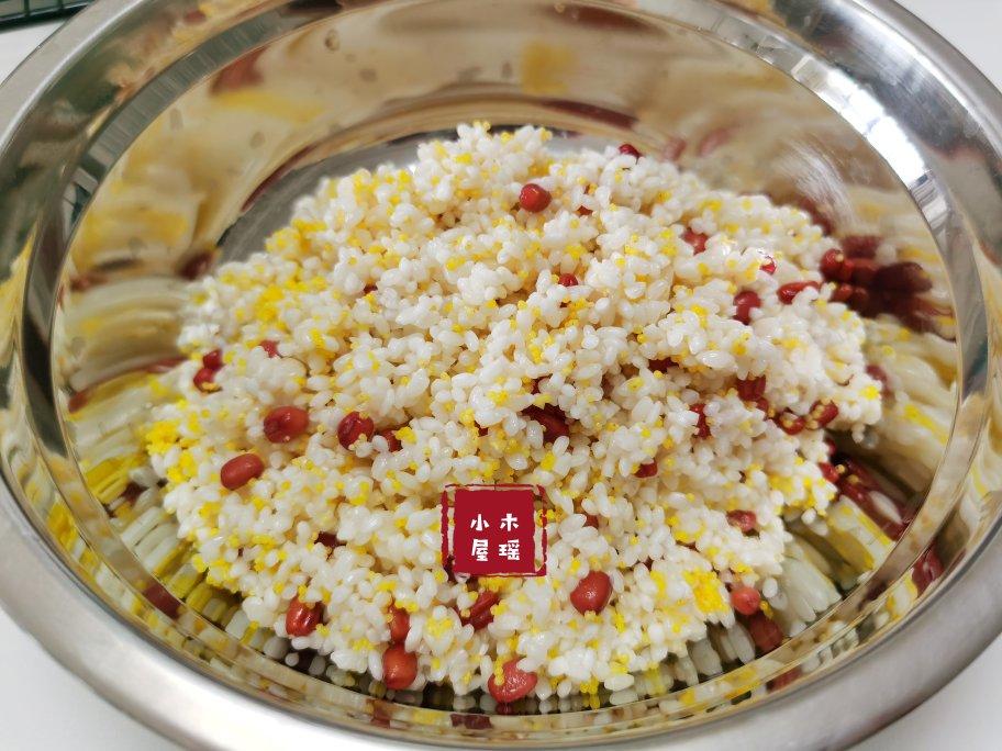 红豆可以提前做成蜜豆也不错,红豆,花生,葡萄干,蜜枣,桂花,糖桂花,糯米里...