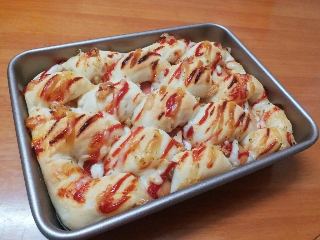 一发整形时面团松弛完了还是有点回缩没卷好……底油又放多了二发完,卷卷散帘子了……东倒西歪的……但是!味道还是很不错的,面...