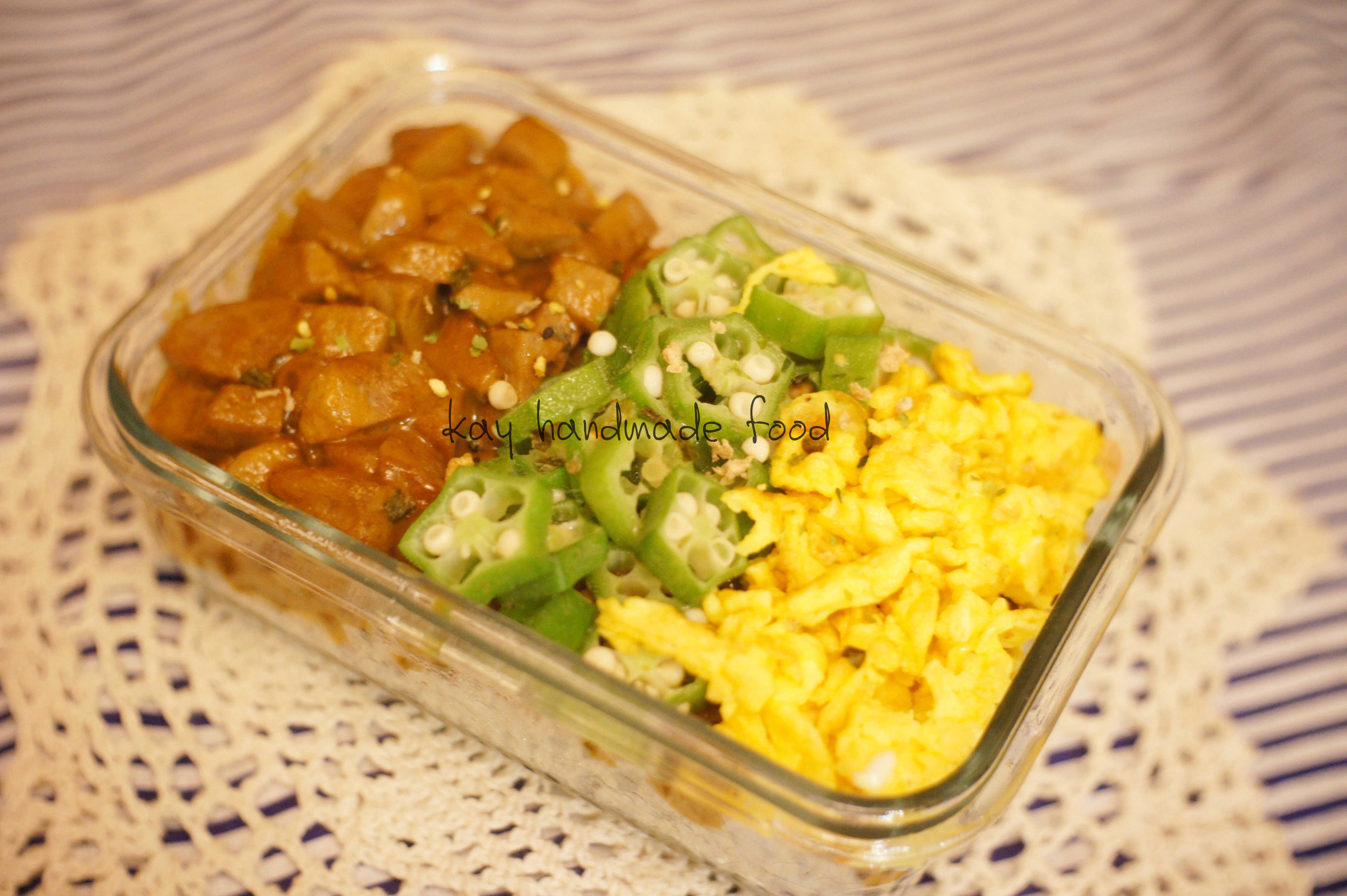 咖喱牛肉丸+秋葵+炒蛋~!!~方便快捷