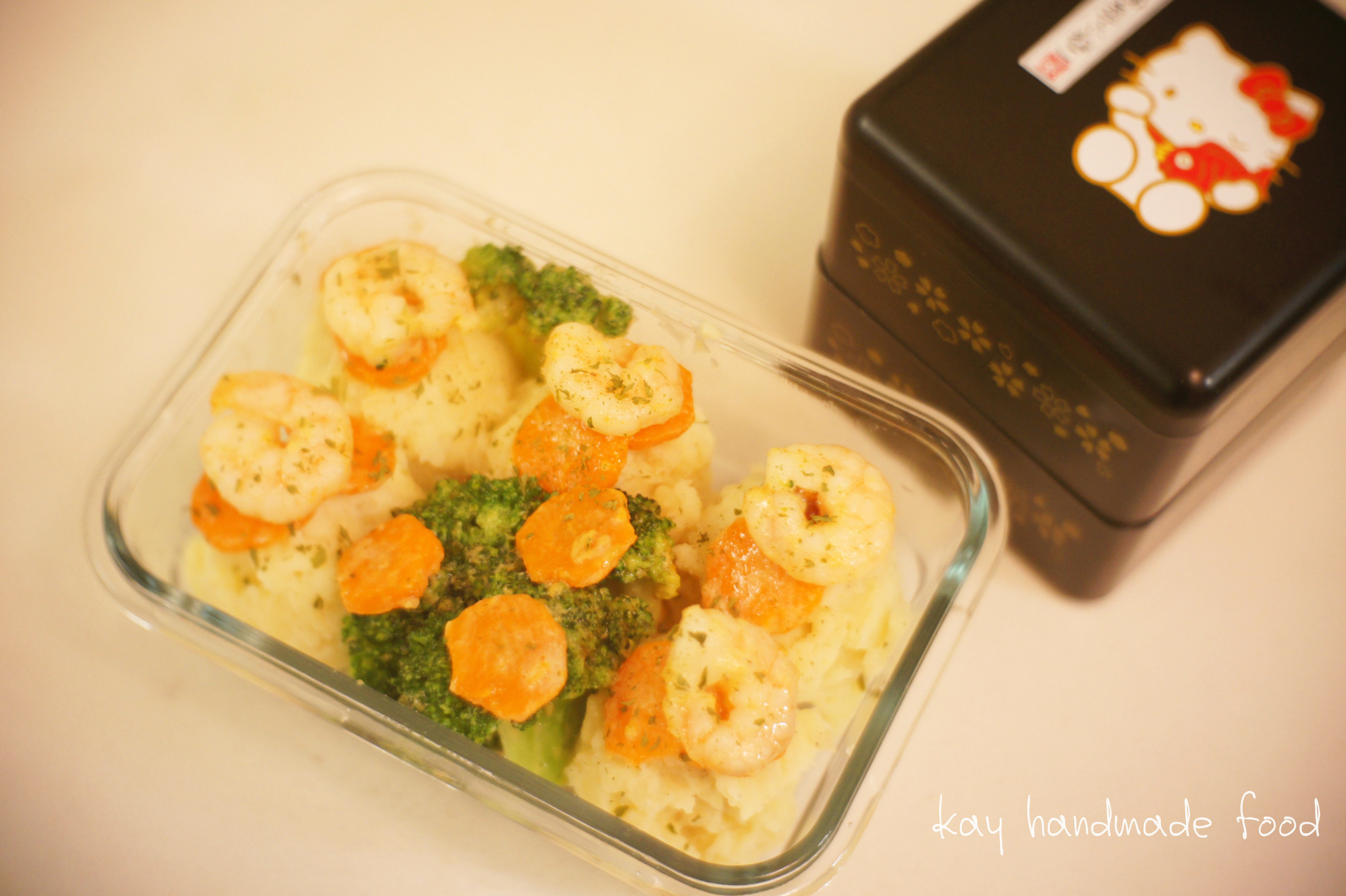 【明日便當】好味薯泥♪♪♪♪♪好好吃...還有蝦、胡蘿蔔和西蘭花