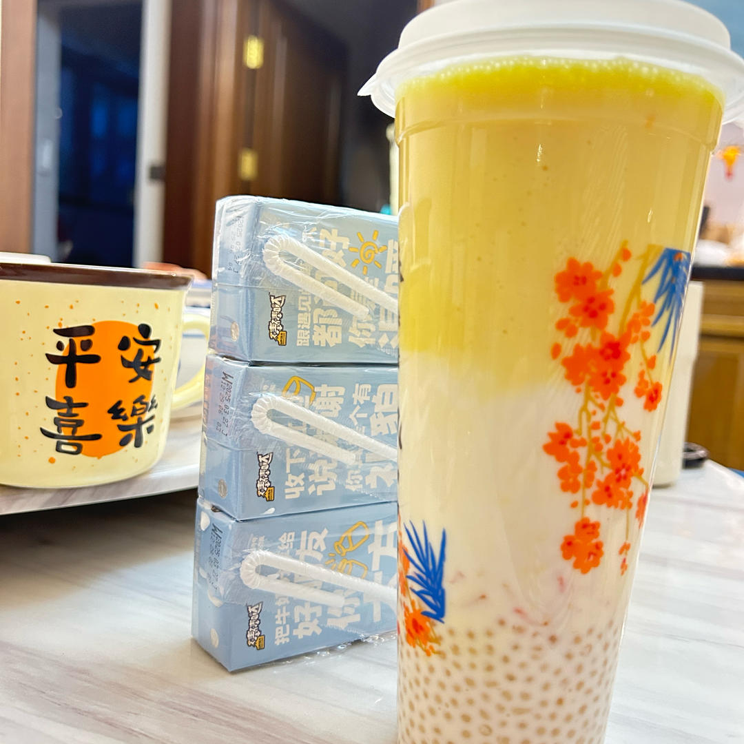 好吃😋用的做咖啡的厚椰乳,自带甜味但是没有椰浆那么厚重,所以和牛奶的比例就1:1添加了,芒果还是少了,下次要多多放芒果#...