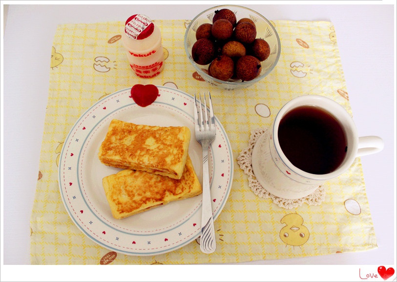 有西多士 养乐多 红茶和龙眼 的早餐