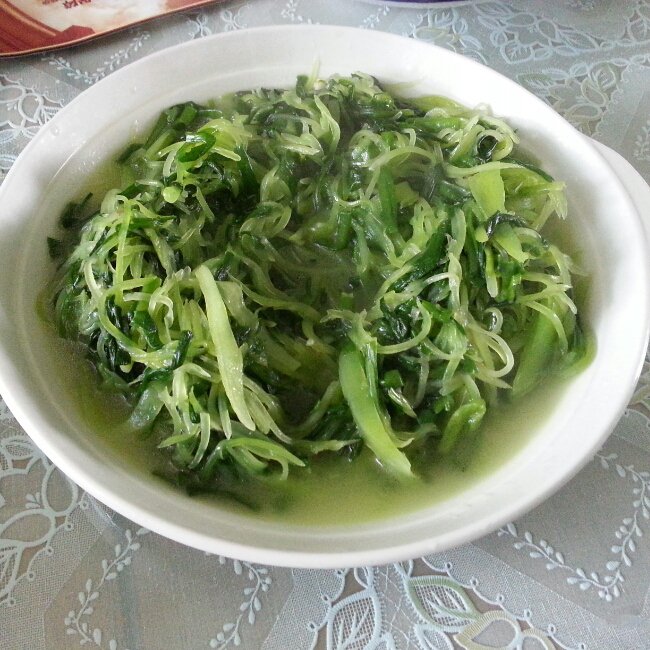 莴苣丝炒韭菜,颜色很清爽。
