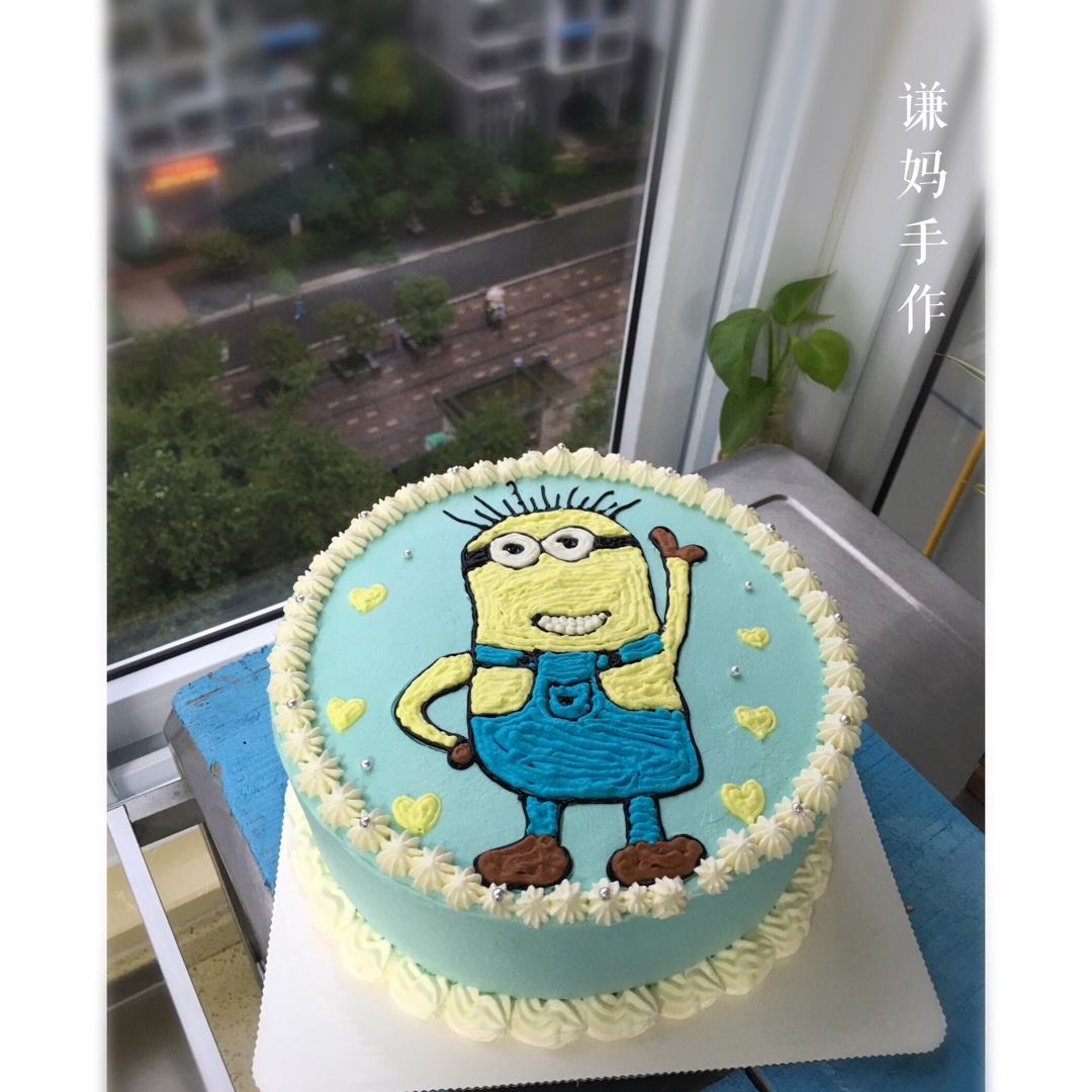 今天一天都在外面带娃上学习班,所以蛋糕早上5:起来做的!六寸戚风,芒果慕斯夹心、蓝风车奶油装饰,家里鲜花太多,所以利用起...
