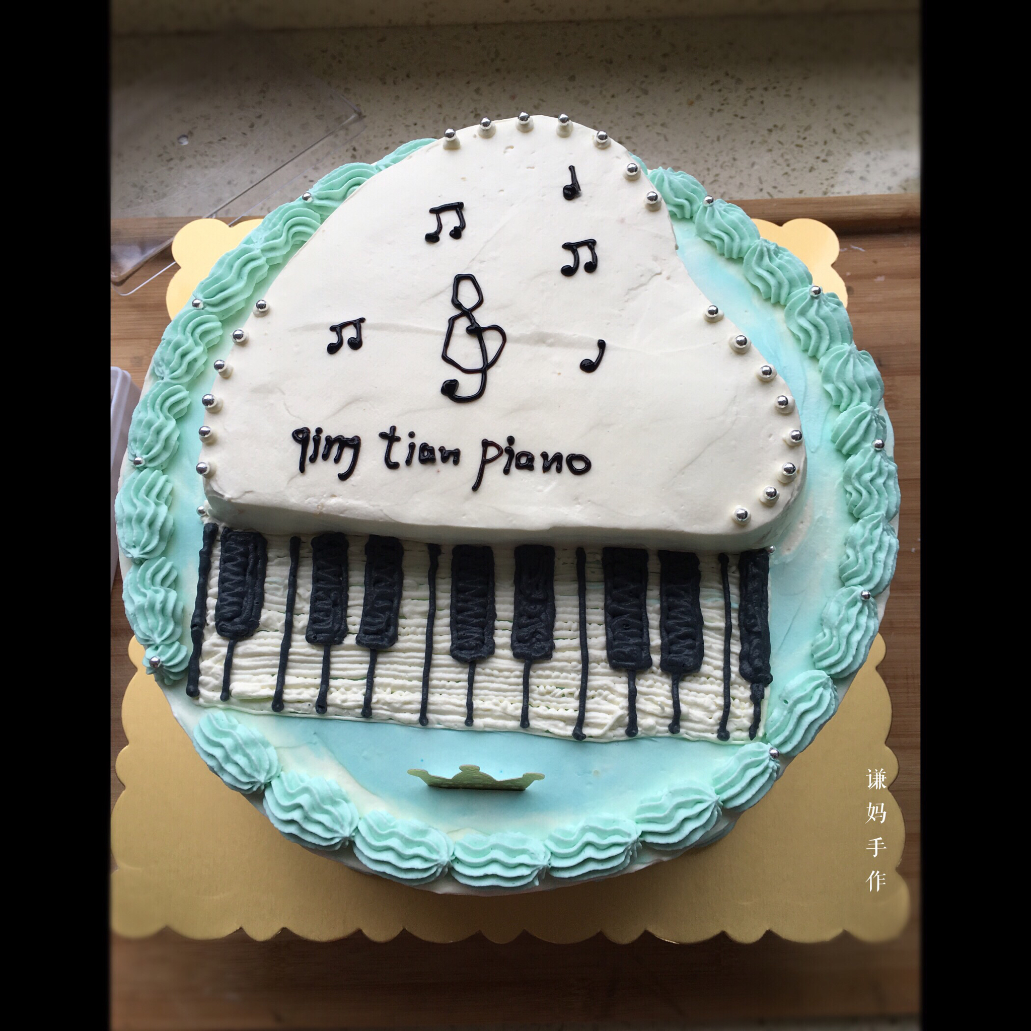 下午匆匆赶回家做的,10寸戚风蛋糕芒果慕斯,小寿星是学钢琴哒!妈妈要求有黑白健!哈哈,还可以吧! #晚餐•2016年4月...