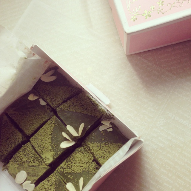 抹茶真的是软软软!不好定型,没有壕的金箔只有拿出杏仁片装小清新了