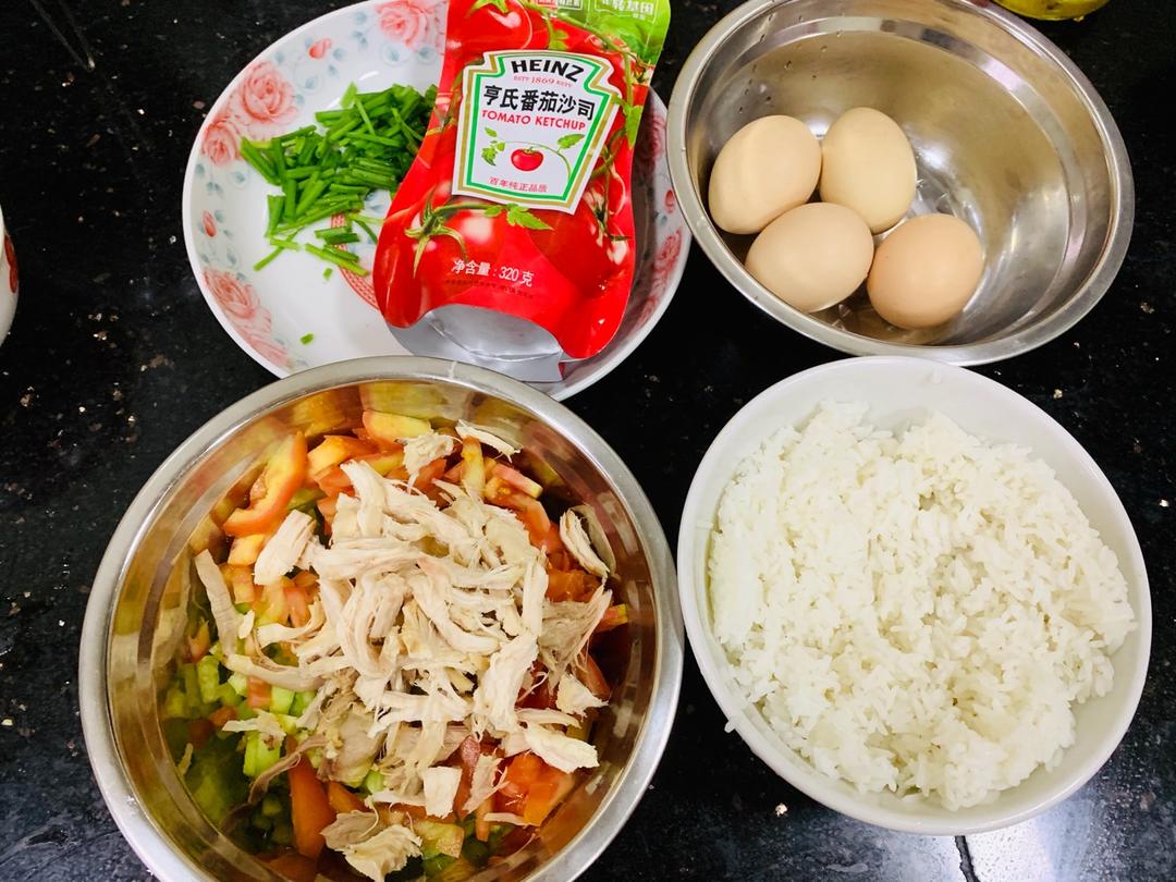 蛋包饭挤上番茄酱看起来好美味~