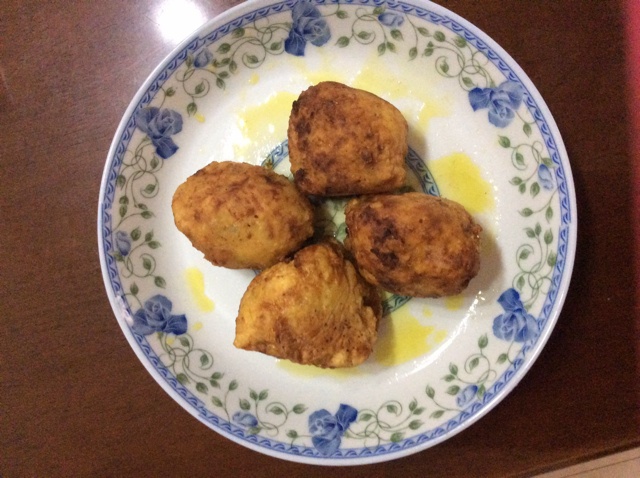 土豆可乐球,卖相略差但味道不错,没有面包糠所以外面就反复裹了面粉和蛋液。第一次做,还算成功...