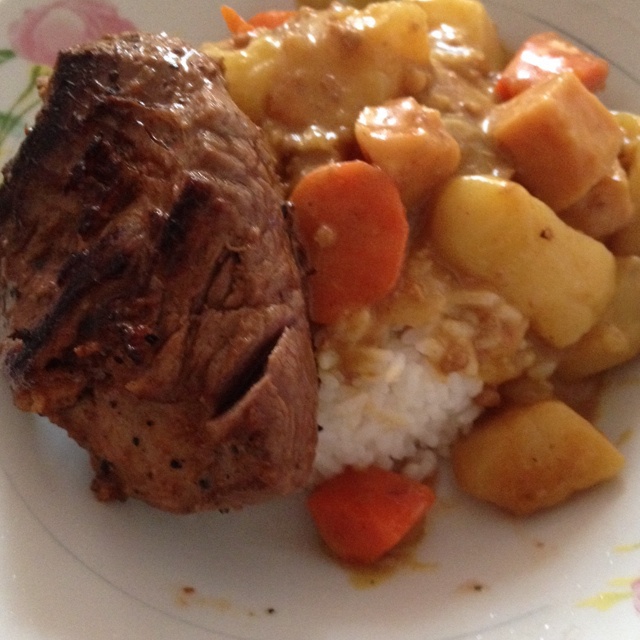 今天得午餐,咖喱黑椒牛排饭
