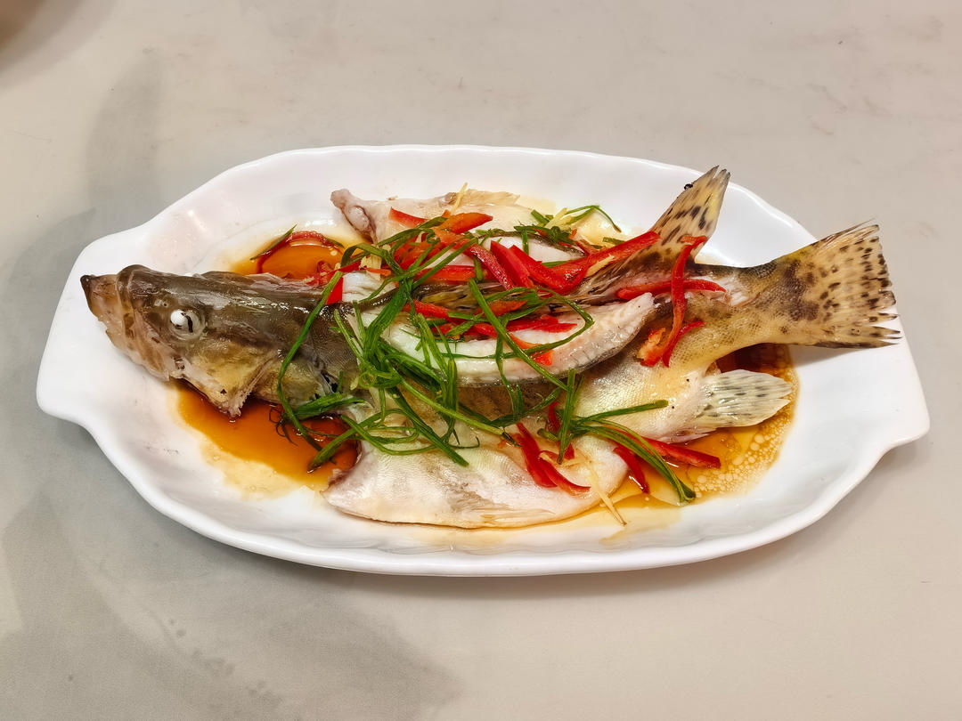 鱼太大啦,蒸的时间久了,肉质有点老,不过味道还是可以滴