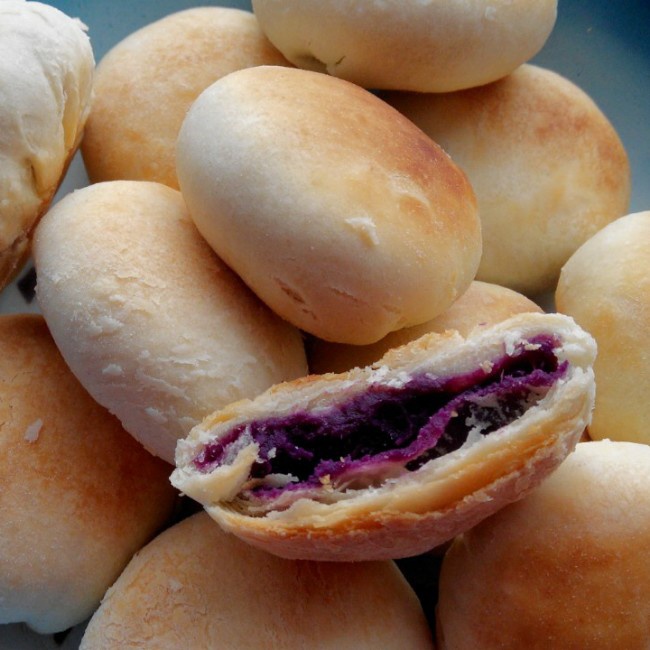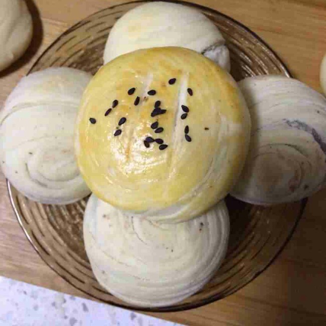 刚出炉的紫薯饼,饼皮太酥了,好吃!