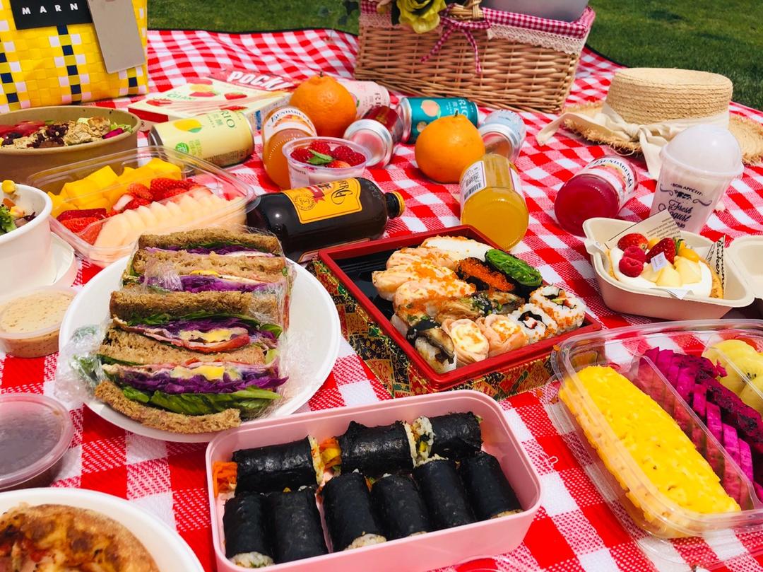 午餐时间,紫菜包饭,厚蛋烧,章鱼肠,韩式辣酱炒鱼饼,韩国泡菜,俄罗斯酸黄瓜。