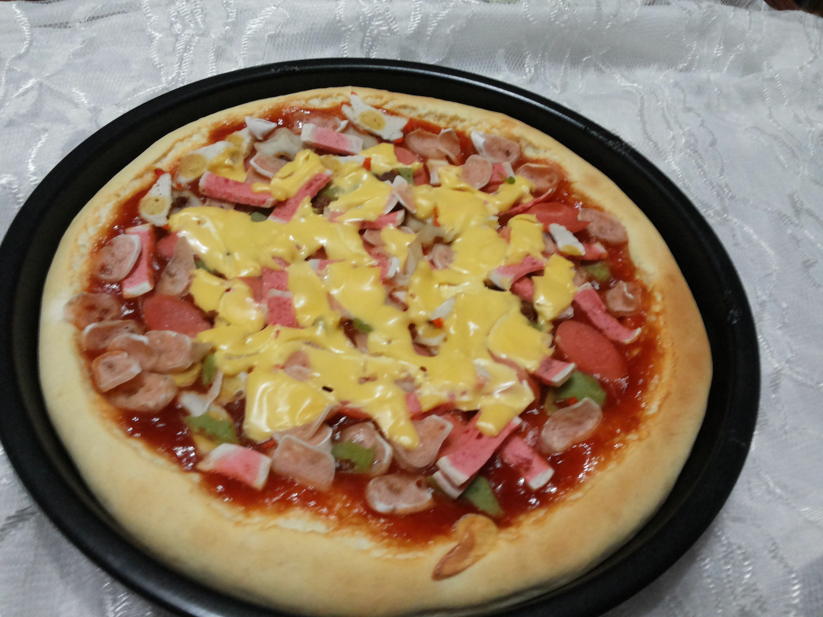 用香肠代替培根,还行.