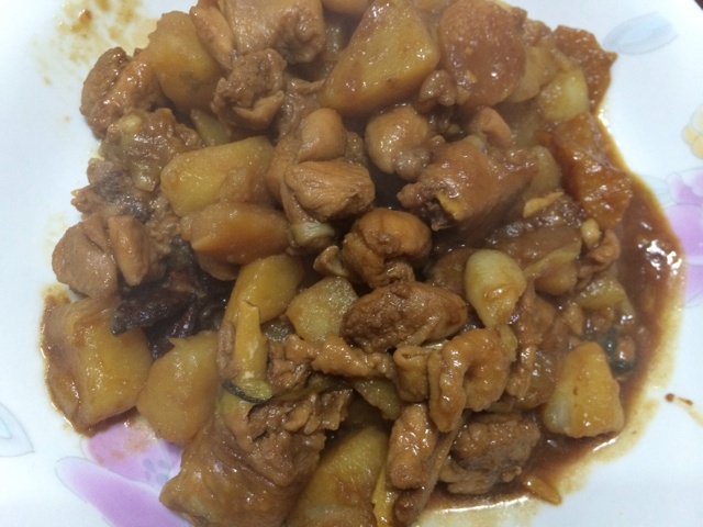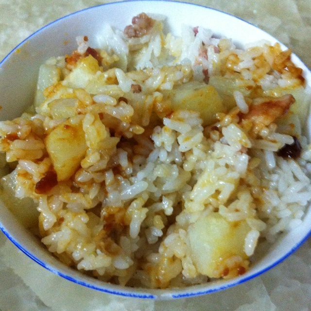 第一次的培根土豆饭,土豆太多了,肉不够,下次要放酱油才够味!